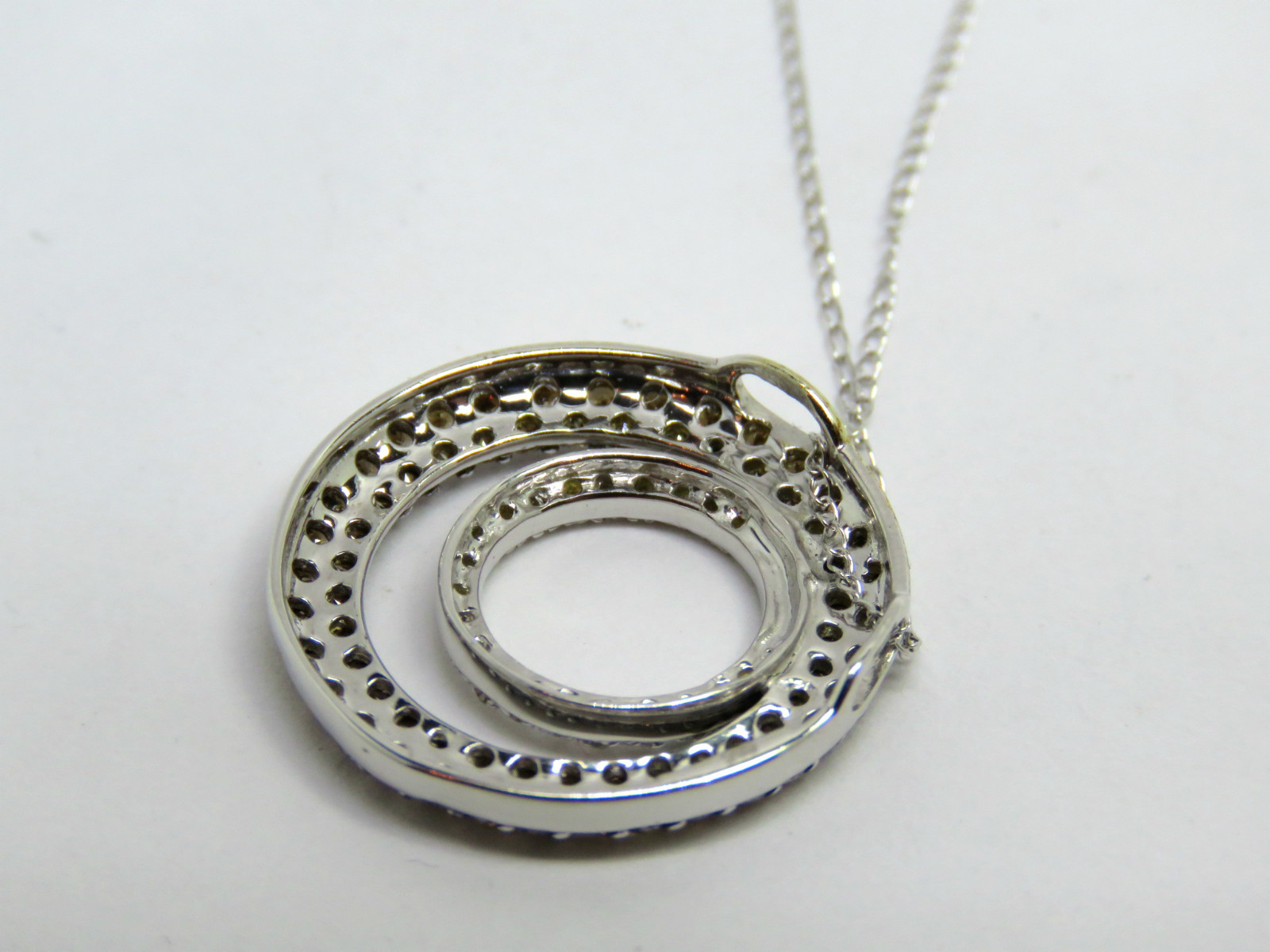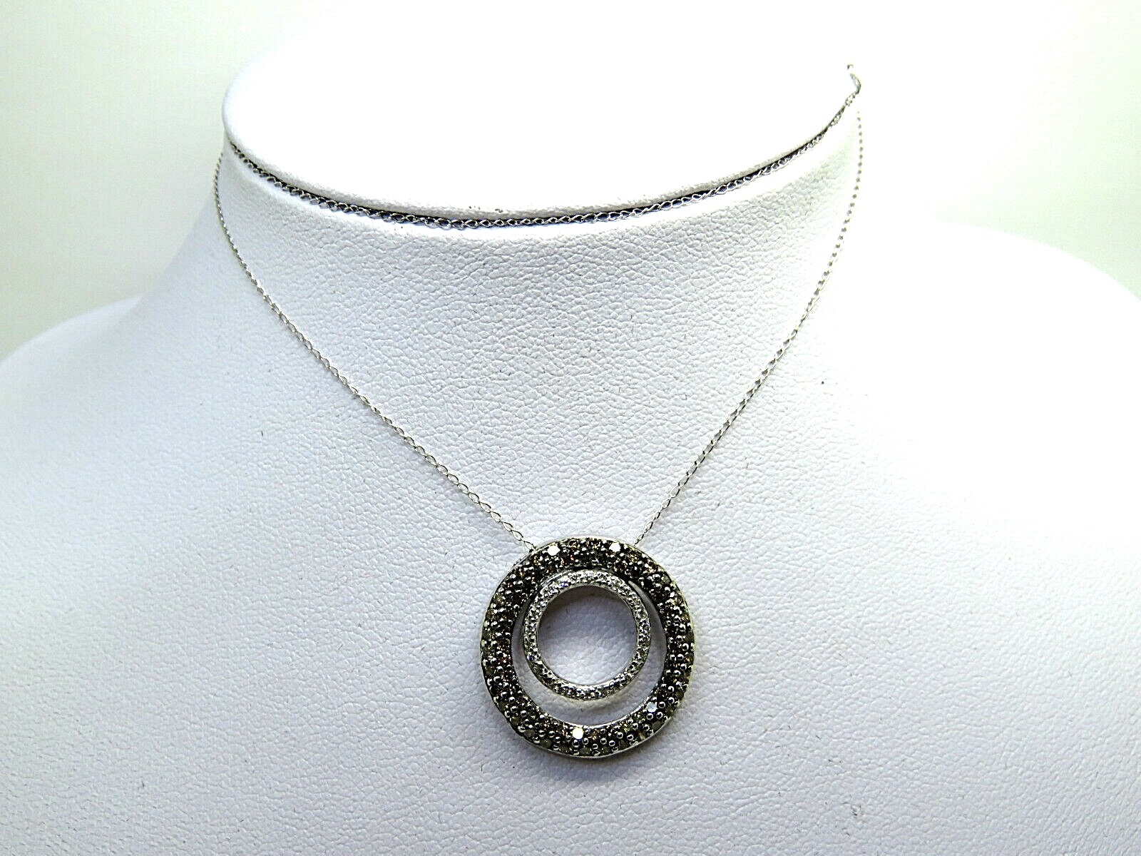 este impresionante Colgante de oro blanco de 14 quilates. características 1.00ct diamantes naturales marrones y blancos, ambientado en un lugar atemporal Diseño redondo de 21 mm.. Incluye un juego Cadena de oro blanco de 14 quilates (46 cm/18,1 pulgadas) – perfecto para la elegancia diaria o para regalar.