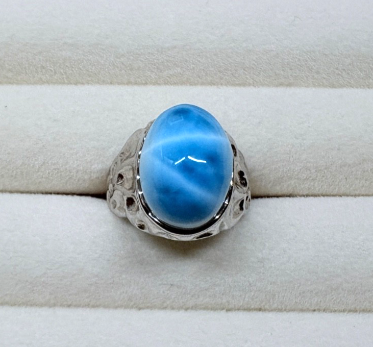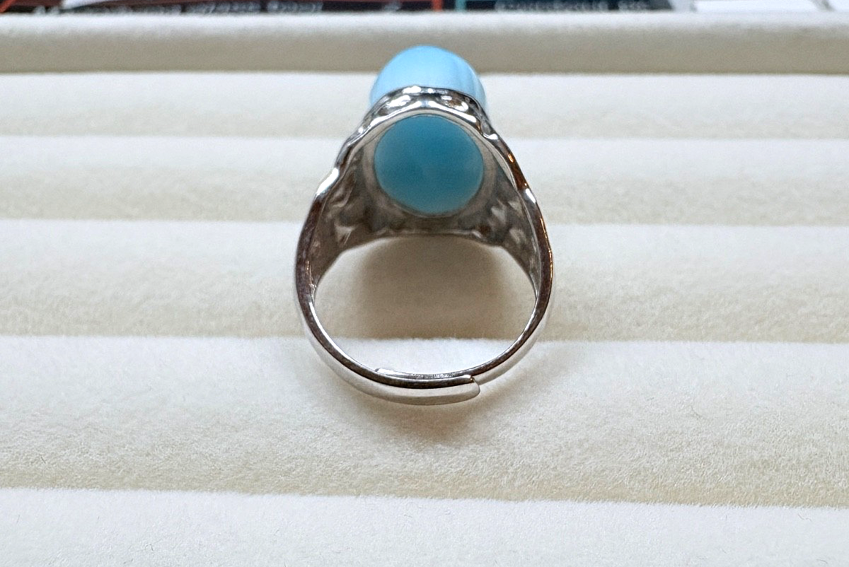 Larimar Cabochon 16.45 x 11.30mm Argent 925 Bague Taille P 1/2 – US 7.75 – Cert