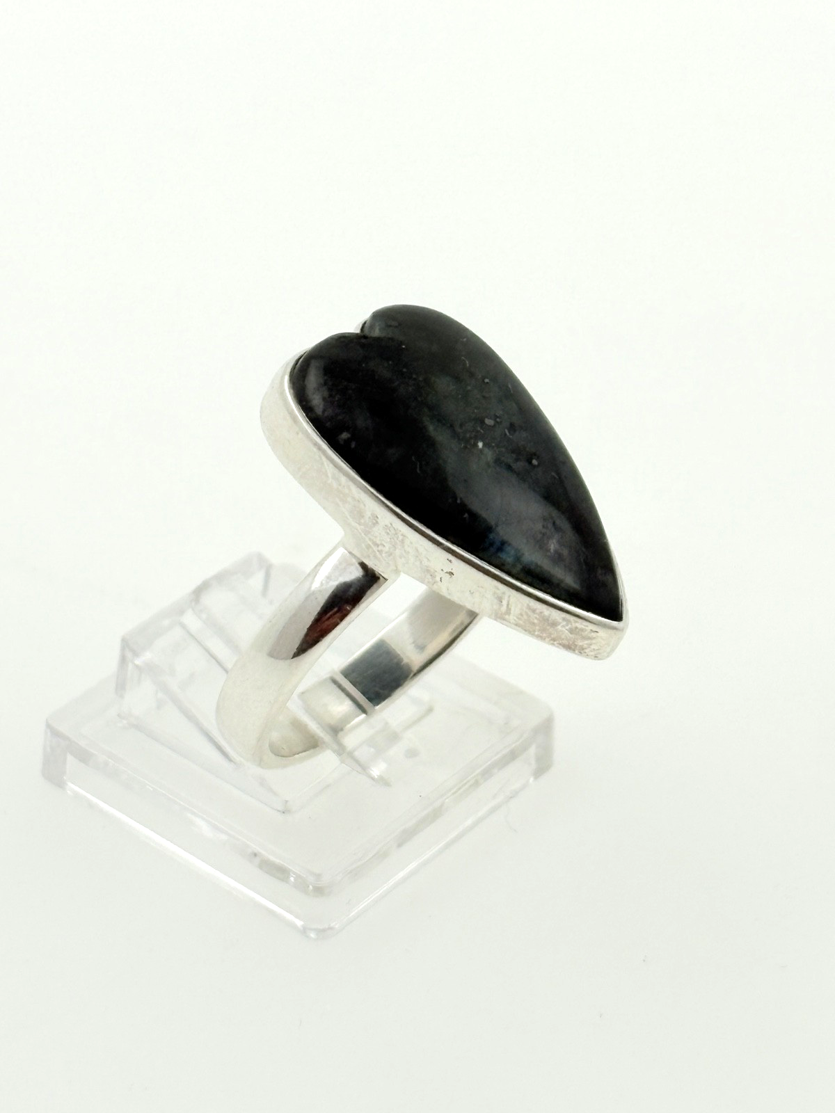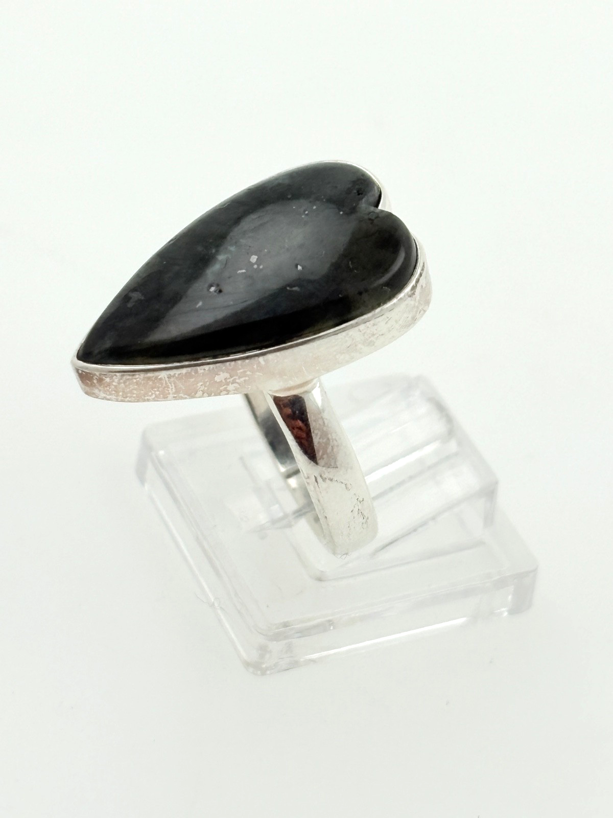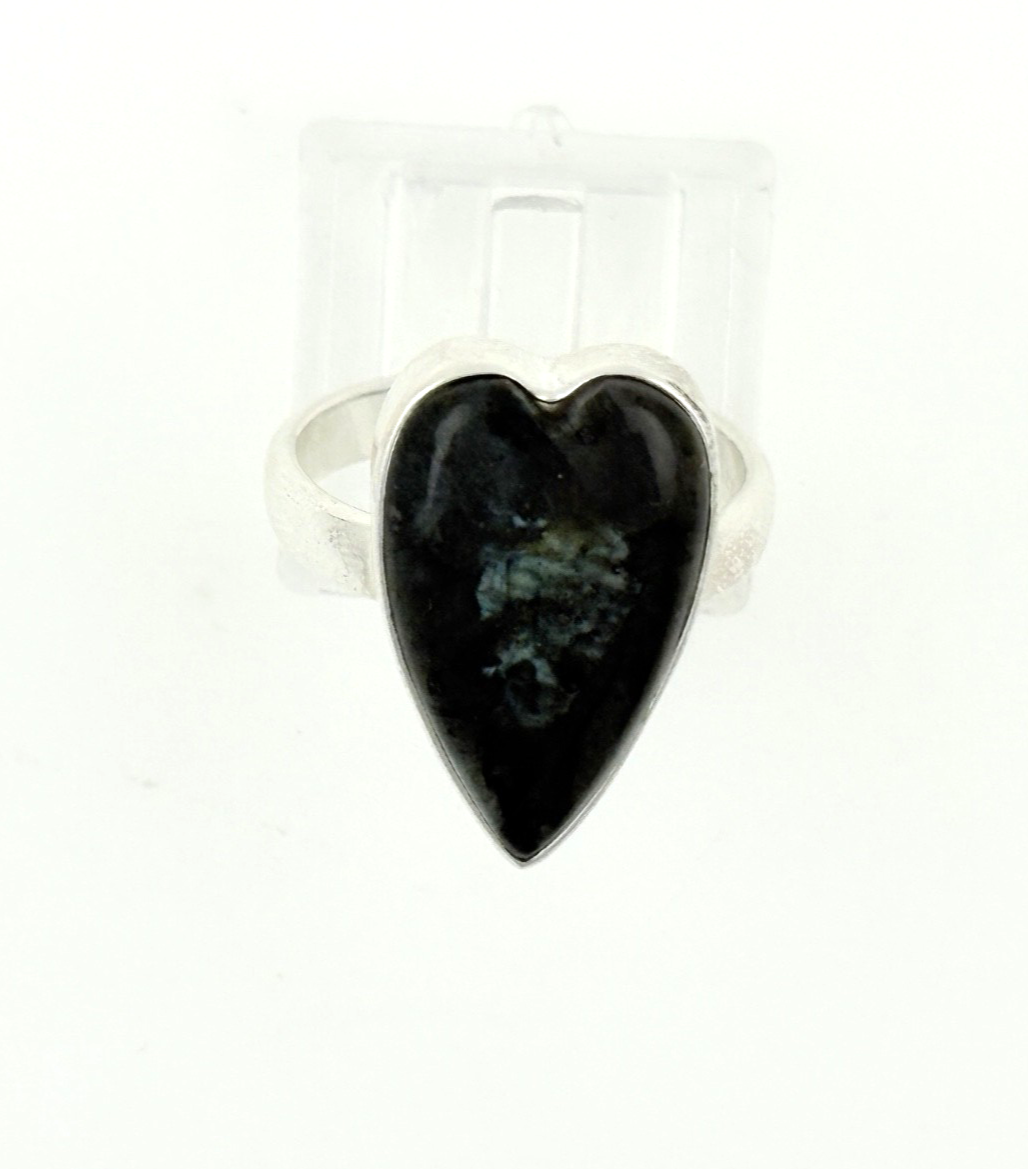 🔥 Bold Obsidian Heart Ring – 925 Sterling Silver – UK R½ / US 9 🔥