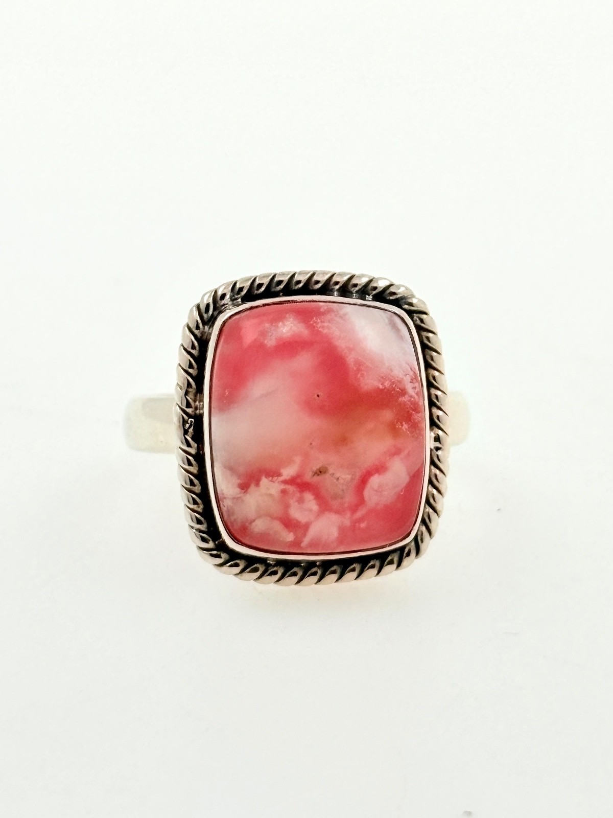 Adorn yourself with the beautiful energy of Rhodochrosite! This stunning new ring features a vibrant pink rhodochrosite stone, set in high-quality .925 sterling silver.