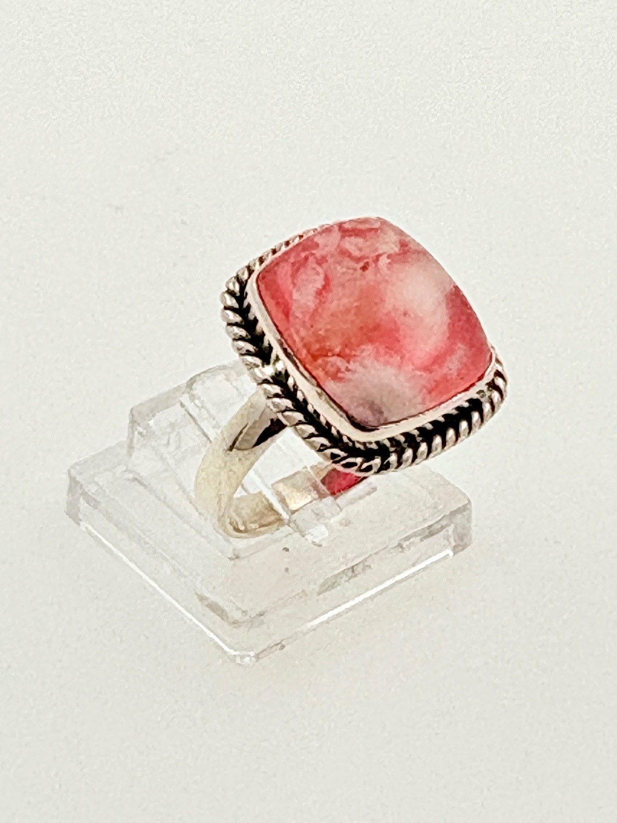 Genuine Rhodochrosite “Stone of Love” Ring – Sterling Silver 925 – UK Size O / US 8.25
