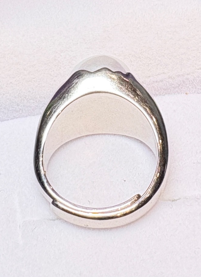 Bague élégante en perles blanches de 11,4 mm | Argent sterling 925 poinçonné | Taille réglable N/US 6,5