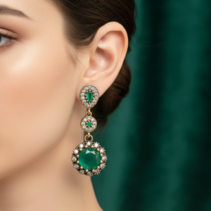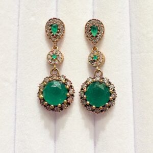 Natural Oval Emerald 0.66ct.& Diamonds 0.90ct.G-H Vs1-Vs2 Y. Gold 14k. Size P